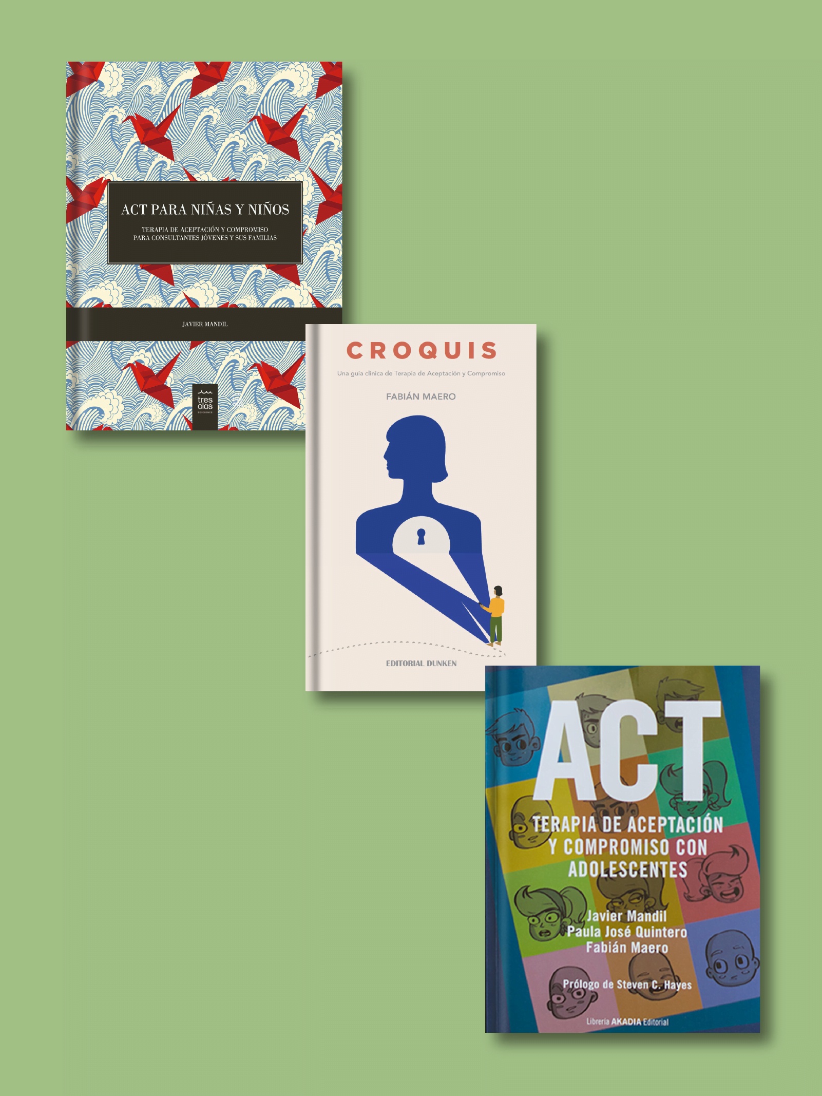 - ACT para niñas y niños: Terapia de Aceptación y Compromiso para consultantes jóvenes y sus familias:Los principios y procesos de la Terapia de Aceptación y del Compromiso se pueden aplicar en el trabajo con niñas y niños. En este libro se encuentra la experiencia de un psicólogo que ha trabajado por años con este grupo etario, y consecuentemente, una voz dedicada a ellos y ellas, y a la vez una voz de apoyo para los padres.En este libro Javier Mandil comparte principios teóricos y ejercicios prácticos para aprender y vivir la terapia de Aceptación y del Compromiso de manera que, aunque las familias estén súper ocupadas, puedan encontrar momentos para practicar esos ejercicios y al mismo tiempo crear oportunidades para conectarse y cultivar la relación con sus hijas e hijos.